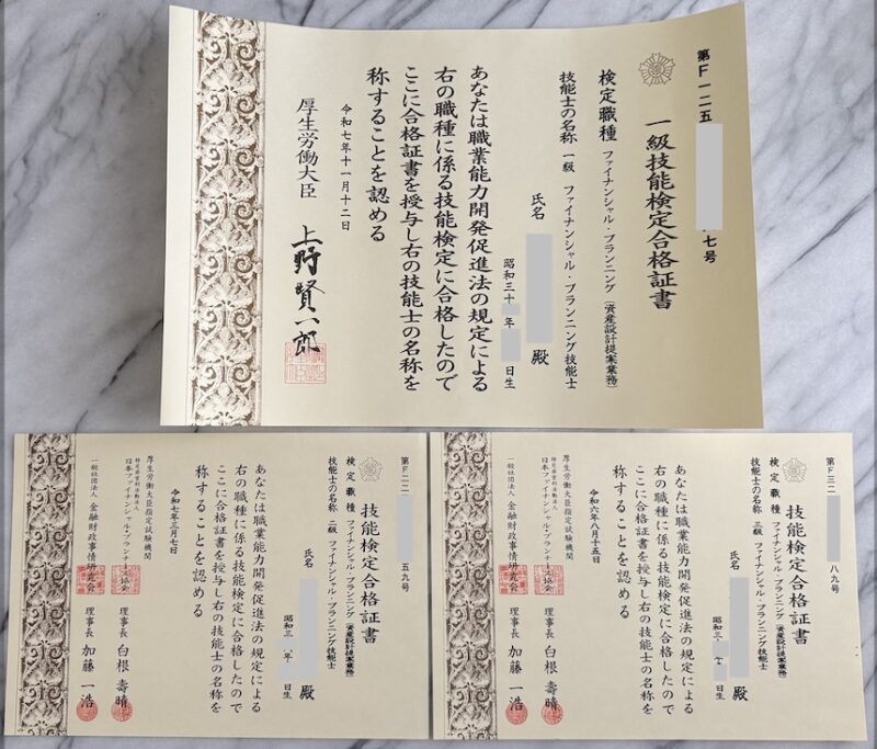 すっかり忘れていたFP1級の合格証書が届きました~‼️