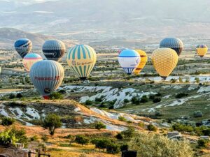 3日目は、この旅唯一の長距離移動の日。カッパドギアからコンヤ経由、宿泊先のパムッカレまでバス🚌で行きます。 昨日、🎈気球鑑賞に行かずホテル🏨に残った人達が、『(ホテルから見た気球が)すばらしかった』と、絶賛するので、今日も見えるのかどうか?と5時半にホテルのバルコニーに出てみると、、、、、、、